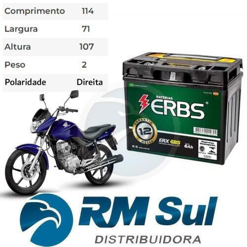 Bateria 6AH Amperes (Biz/Titan/Fan/Bros/Xre/CB TW 16..Factor/FAZER150) Erbs