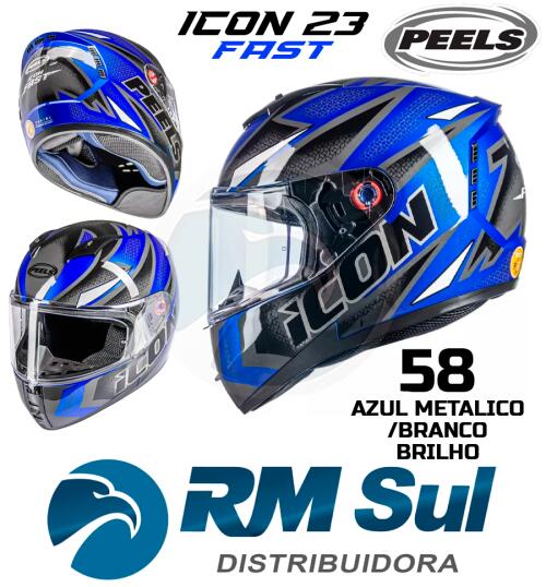 Capacete Peels Icon 23 Fast Azul Metalico/Branco 58 (Cód. 21843 - Ref.: 522632)